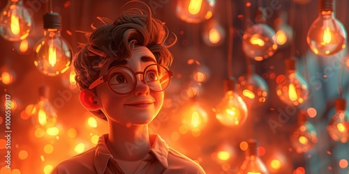 boy, portrait, smile, light, glowing, warm, happy, light, bulb, bright, imagination, joy, optimistic, childhood, wonder, dreamy, whimsical, youth, positive, future, illuminated, soft, sparkling, radiant, enchanted, mystical, sparkle, shine, hopeful, gold, glow, ambience