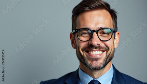 man, happy, smile, professional, business, confident, success, portrait, goggles, stylish, modern, gentleman, formal, beard, positive, successful, businessman, closeup, smiling, businessman, well-dressed, attractive, well-groomed, face, people, person, guy, expression, photogenic, fashion, nerd, hair, studio, funny, 1, boy, student, man, suit, casual attire, work, looking