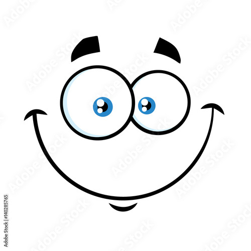 Smiling Cartoon Funny Face With Happy Expression. Illustration Isolated On White Background