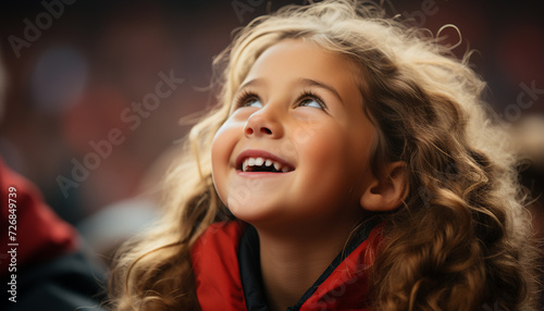 Smiling child, cheerful happiness, cute girl playing outdoors generated by AI