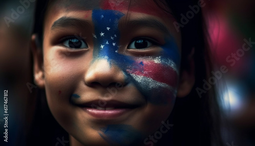Smiling child with face paint shows patriotism generated by AI