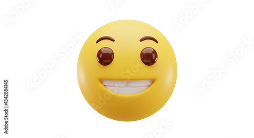 Smiling Emoji with Wide Grin and Bright Eyes Isolated on White