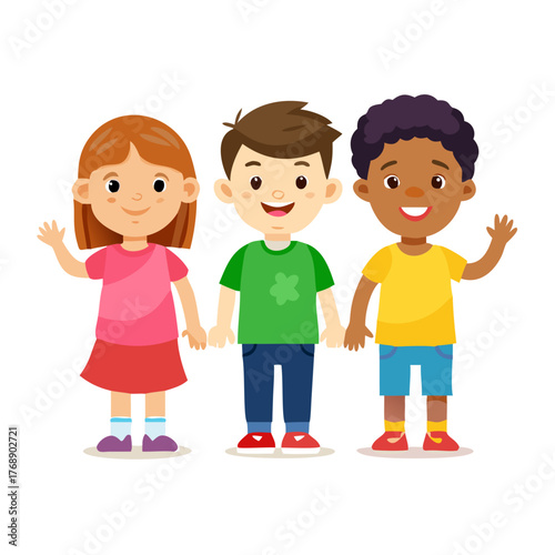 Smiling kids character in flat design style isolated. Diversity children cartoon vector illustration.
