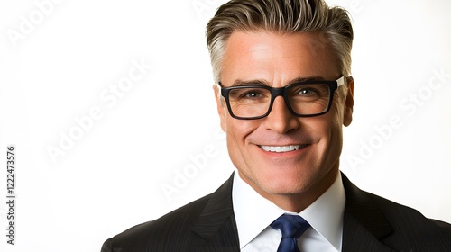 Smiling Mature Businessman in Glasses, Corporate Portrait