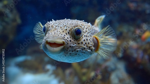 fish, marin, aquarium, closeup, underwater, round, body, spot, blue, eye, smile, coral, ocean, water, wildlife, nature, sea, animal, pet, vertebrate, portrait, photo, animal, oceanography, tropical, isolated, copy space, fin, scale, adorable, cute, happy, fresh water, bright, colourful, aquatic, photo