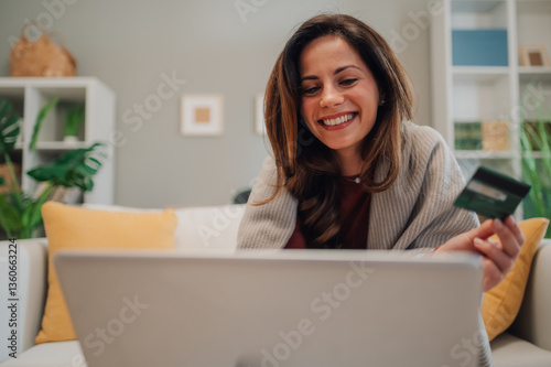 woman, shopping, online, laptop, credit, card, payment, home, sofa, buying, cyberspace, commerce, technology, retail, consumer, purchase, transaction, digital, lifestyle, comfort, convenience, secure, happy, smiling, finance, banking, spending, money, indoor, living, room, domestic, life, apartment, house, interior, furniture, relaxation, wireless, connectivity, browsing, website, ordering, delivery, sale