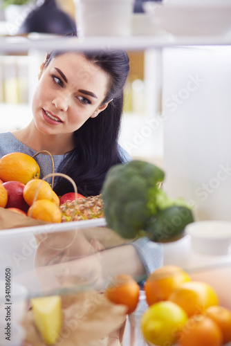 background, woman, food, person, fruit, paper, kitchen, refrigerator, open, young, nourishment, home, beautiful, cool, diet, ravenous, refrigerator, deep freezer, fresh, lifestyle, happy, storage, cooking, casual attire, cheerful, food preparation, freshness, grocery, health food, home appliances, homemaker, organic, smiling, taking, inside, interior, lemon, vegan, vegetarian, bottle, vegetable, full, adult, alone, beauty, beg, box, buy, cabbage