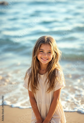 young, girl, caucasian, children, beach, sand, brown, hair, smile, cheerful, innocence, water, wave, serene, sky, sunlight, glow, natural, vibrant, tranquil, setting, joyful, carefree, childhood, gentle, warm, face, camera, peaceful, portrait, summer, playful, scenic, soft, beauty, happiness, sea, nature, relaxed, atmosphere, idylli, simplicity, harmony, lifestyle, moment, blond, sun