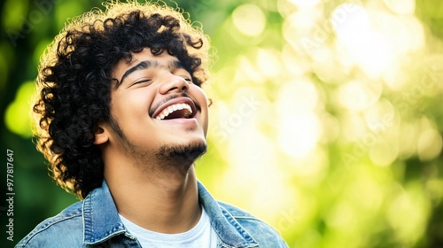 young men, curly hair, smiling, sunlight, joyful, happiness, carefree, nature, cheerful, summer day, natural light