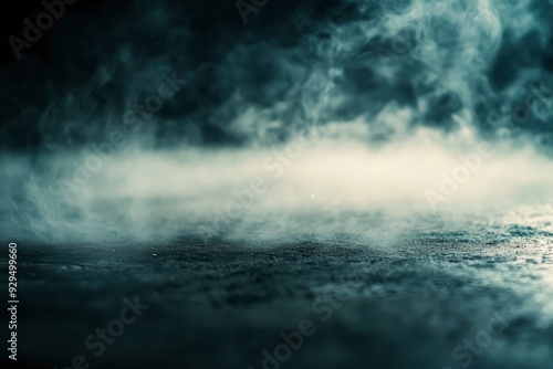 Smoke On Cement Floor With Defocused Fog In Halloween Abstract Background , ai