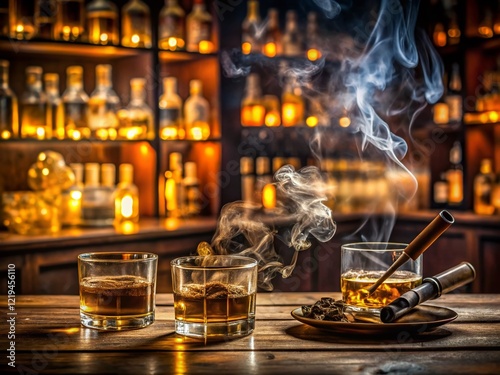 Smoky Bar Atmosphere: Cigarette Smoke, Dim Lighting, and Classic Bar Setting