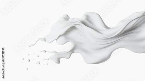 Smooth white liquid flows gracefully, creating elegant wave like shape. texture appears soft and creamy, evoking sense of purity and freshness