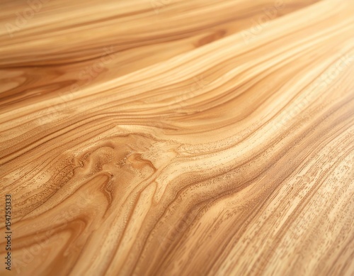 Smooth wooden tabletop with natural grain patterns and warm tones