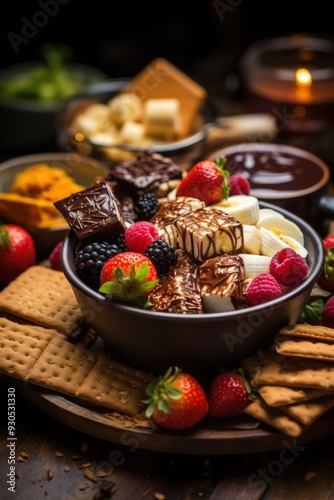s'mores chocolate fondue; dessert photography; best for banners, flyers, and posters