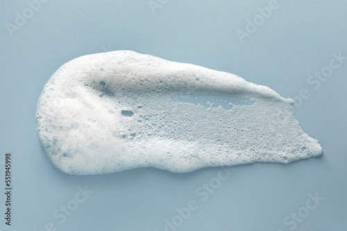 Smudge of white washing foam on color background, top view