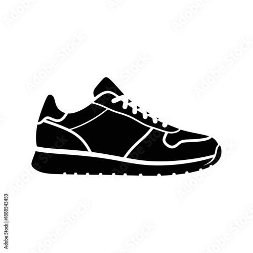 Sneaker Shoe Silhouette - Sport Footwear Vector Icon - Black Running Trainer Shape Isolated on White Background