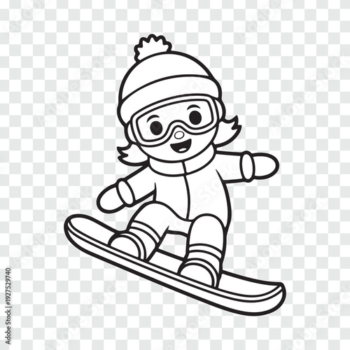 snowboard, snowboarding, snowboarder, cartoon, children, action, winter sports, active, adventure, winter, sport, illustration, cheerful, gear, goggles, happy, fun, activity, motion, recreation, leisure, season, playful, young, person, outline, black, white, smiling, enthusiastic, energetic, glee, skiing, board, winterly, cold weather, snow, vector, art, drawing, boy, ski, children
