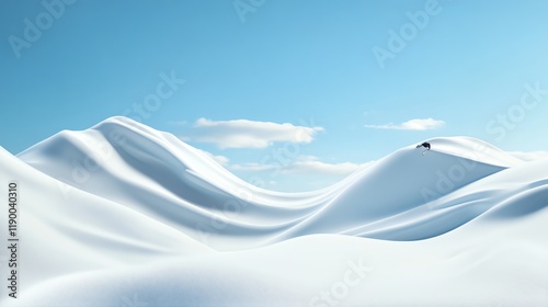 Snowboarding action, rider midair performing tricks, snowy peaks below, 3D illustration