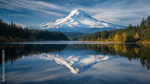 mountain, lake, snow, forest, water, sky, cloud, nature, scenery, landscape, serenity, calmness, outdoors, beauty, autumn color, clear, blue, majestic, hiking, wilderness, conservation, environment, travel, peaceful, adventure, panoramic, scenic, picturesque, mountain chain, weather, wildlife, volcanic, ecosystem, recreational, scenic view, explore, geography, tour tourism