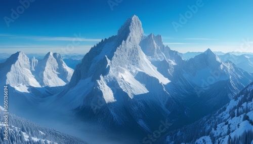 Snow-Capped Mountains Under a Clear Blue Sky Creating a Majestic Winter Landscape