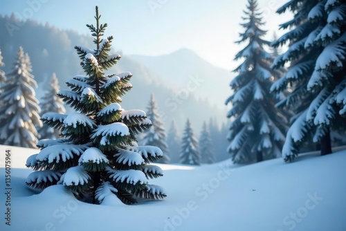 Snow-covered branches of fir tree in frosty landscape, evergreen, tree, forest