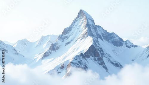 Snow-covered mountain peak, pristine white background, hill, mountain, fresh