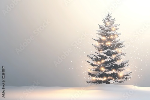 christmas, tree, light, snowy, serene, snow, holiday, winter, festive, decoration, background, copy space, pine, illuminated, tranquil, seasonal, celebration, simple, cold, white, nature, calm, december, scene, light, sparkle, glow, tradition, simplicity, elegance, peaceful, atmosphere, landscape, minimalism, christmas, twinkle, aglow, frosty, chilly, pure, brightness, ornament, festive season, winter landscape