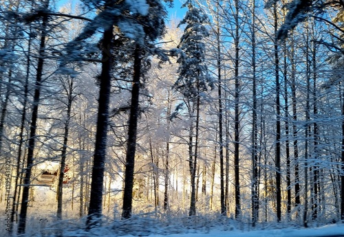 Snowy forest in winter sunlight