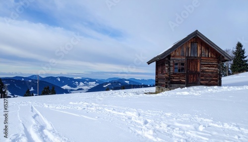 snowy, mountain, hut, wooden, winter, landscape, scenery, cabin, cold, sky, cloud, blue, peaceful, scenic, wilderness, nature, snow, view, horizon, vale, hiking, outdoors, tranquil, solitude, pristine, calm, huge, expansive, elevated, peak, ridge, alpine, forest, tree, clear, sunlight, fresh, glacé, white, frigid, track, trail, wintery, mountainous, remote, rustic