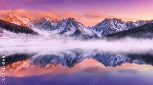 breathtaking, snow, frosty, gorgeous, vibrant, mountain, cloud, picturesque, tranquil, scenic, winter, nature, fog, landscape, lake, cold, peaceful, majestic, beauty, snowy, serene, mist, sunrise, calm, hue, colours