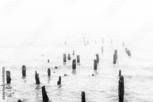 water, old, coast, line, nature, sea, natural, wooden, wood, sky, dock, silence, seascape, damaged, background, landscape, plank, dramatic, shadow, shore, structure, texture, coastal, vertical, security, wave, tree, trap, baltic, erosion, sand, defense, low, beach, tide, element, sandy, row, pile, vacation, chain, break, pole, breakwater