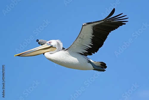 Soaring Pelican in Flight Over Perth's Blue Skies - A Glimpse of Australian Wildlife