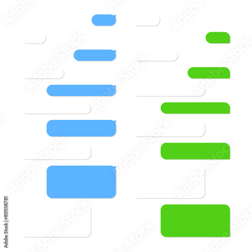 Social media chatting box. Message box text element. Speech bubble, chat, empty text bubbles, white, blue, green, label.