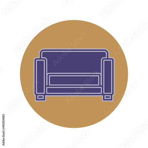 Sofa on circle background. Flat illustration in form of thin lines for interior design. Couch with pillow and back. Symbolic icon for comfortable seat