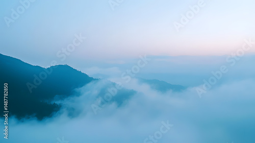 Soft atmospheric transition mountain range nature landscape misty environment aerial view sky blue concept