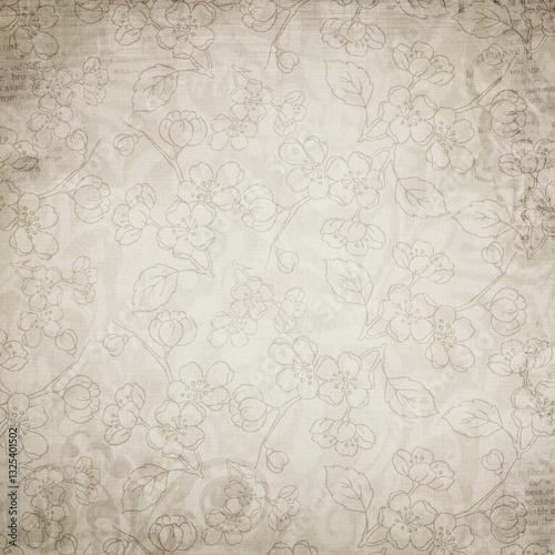 Soft beige floral sketch pattern with delicate blossoms and subtle vintage texture. Perfect for scrapbook backgrounds, stationery, and gentle decorative themes.