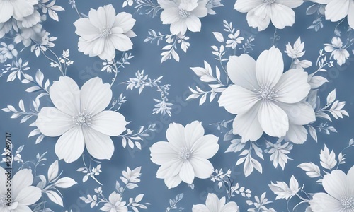 Soft blue and white pattern with subtle flower motifs, Damask, wallpaper