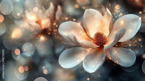 Soft blurred bokeh lights softly glowing over a pastel floral background, creating a dreamy and romantic atmosphere, book illustration style
