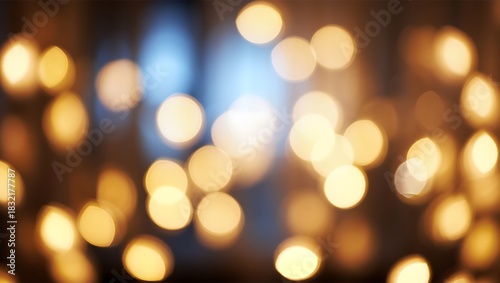 Soft focus background of warm golden lights and blurred blue tones