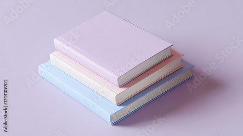 Soft pastel colored stack of blank notebooks or books on a light purple background
