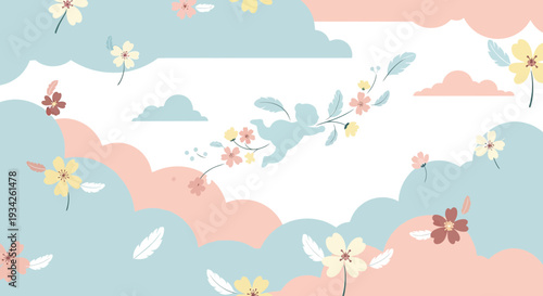 Soft Pastel Floral Clouds Seamless Pattern Background