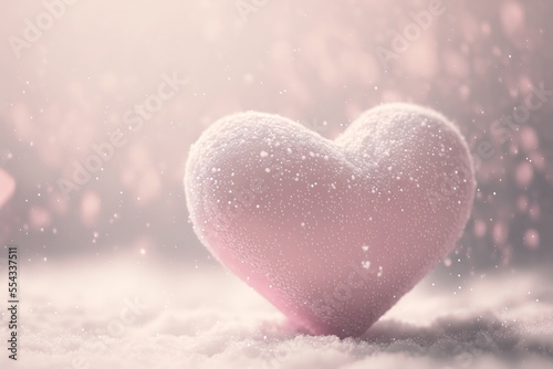soft pastel pink heart with abstract background with glitter glow shine light and snow flakes ground