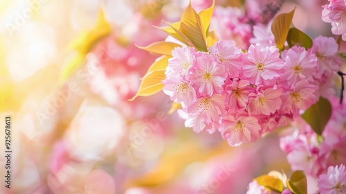 Soft Pink Cherry Blossom Flowers with Sunlight.