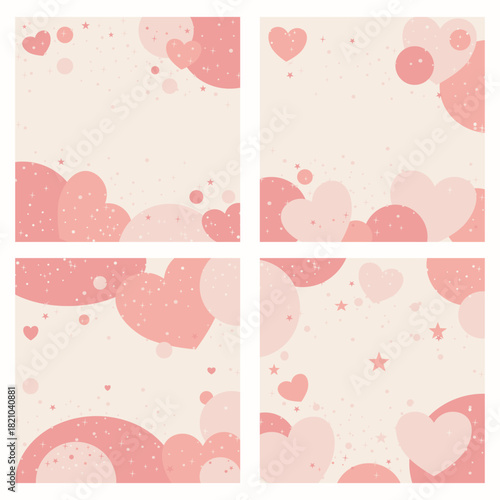Soft pink heart backgrounds collection with sparkles