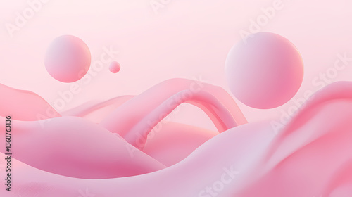 Soft pink rounded shapes suspended in mid-air, shapes, pink. Weightless Drift. Illustration