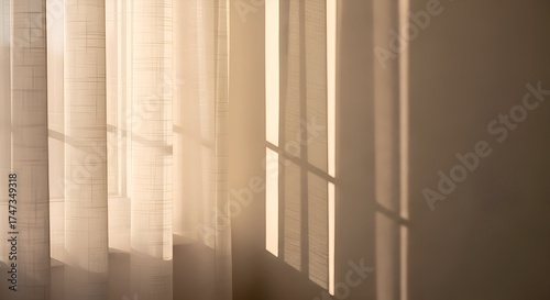 light, shadow, curtain, window, sunlight, pattern, texture, abstract, interior, home, design, architecture, minimalist, modern, sheer, semitransparent, fabric, line, geometric, shape, warm, gold, beige, neutral, calm, peaceful, serene, morning, day, bright, airy, soft, delicate, detail, closeup, sharpened, composition, artistic, aesthetic, simple, clean, natural, elegant, gentle, subtile, atmosphere, mood, calmness, stillness