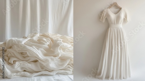 dress, bedding, fashion design, home decor, natural light, textile, white dress