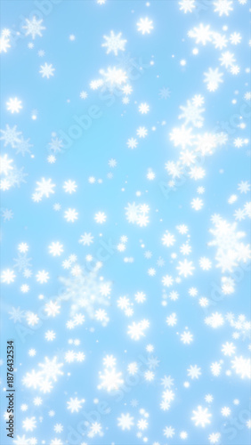 Soft winter snowflake pattern on light blue background, festive abstract snowfall with gentle glowing particles