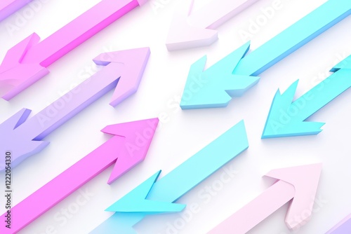 Soft-hued 3D arrows in pastel shades on a white backdrop.
