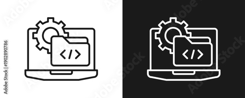 software, development, code, computing, programming, coding, icon, vector, illustration, black, line, outline, monochrome